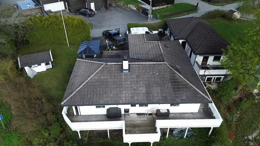På Slåbråtveien  møtte vi et tak som var preget av værslitasje, med synlig mosevekst og matthet i overflaten. Taket var strukturelt i god stand, men trengte en oppfriskning for å bevare både utseende og funksjonalitet. Vi gjennomførte en skånsom men effektiv høytrykksvask som fjernet alle urenheter og biologisk vekst. Etter grundig tørking påførte vi to strøk med spesialtilpasset taklakk som beskytter mot UV-stråler, fuktighet og ny mosevekst. Resultatet er et tak som både ser friskt ut og har fått forlenget sin levetid med mange år. Kunden fikk en kostnadseffektiv løsning som gir både estetisk og funksjonell forbedring av boligen.